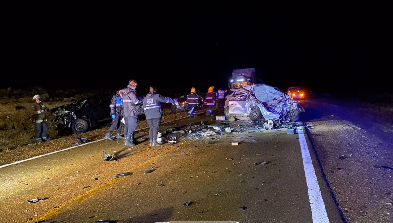 En tanto, un adolescente y una mujer fueron trasladados de urgencia a Comodoro. Bomberos, Gendarmería y policía trabajaron en el lugar para rescatar a las víctimas entre los hierros retorcidos.