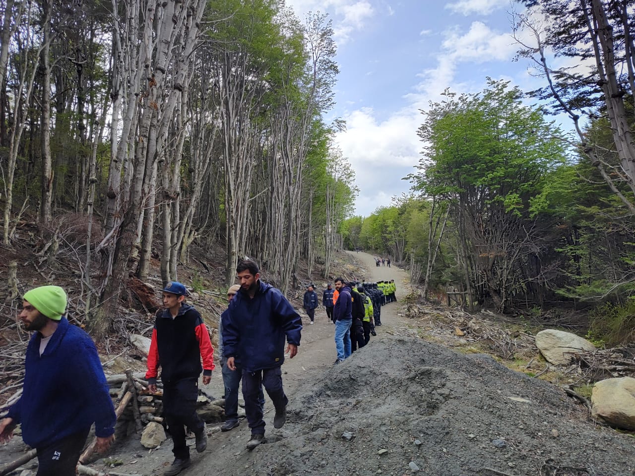 La zona de la ocupación, aledaña a los Boy Scouts, fue custodiada por personal policial, quienes restringen el ingreso de materiales de construcción como pico, pala y herramientas. Se confirmó la presencia de Lorena Sánchez, de la MUnicipalidad de Ushuaia junto a personal policial, aunque las gestiones fueron escasas y sin avances concretos.