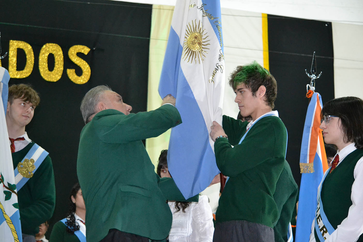 Por su mérito académico, el nuevo abanderado es Gaspar Méndez Ameri. Las Escoltas para el próximo Ciclo Lectivo serán Mateo Valentino Cabral (1era) y Ulises Barrera (2da). Tras el traspaso, los abanderados y escoltas salientes fueron invitados a colocar las banderas y estandartes en sus respectivos pies, acompañando el resto de la jornada.