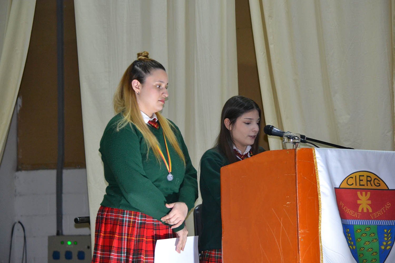 La despedida a los egresados estuvo a cargo de las palabras de los estudiantes de 5to Año, Constanza Alvarado Haro, Román Díaz y Mateo Uribe, quienes vieron partir a sus compañeros “hacia un futuro que se vislumbra venturoso”. En representación de los que finalizan su paso por el CIERG, hablaron Lucía Redondo y Malena García Matoski.