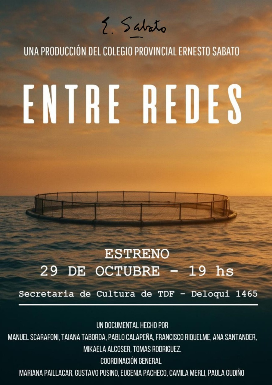 USHUAIA.- La juventud fueguina toma la palabra para cuestionar la planificación del futuro en la provincia. Este miércoles 29 de octubre a las 19 horas, el público tendrá cita en la Secretaría de Cultura de Tierra del Fuego (Deloqui 1465) para el estreno de “Entre Redes”, una producción 100% audiovisual a cargo de estudiantes del último año del Colegio Técnico Ernesto Sabato.