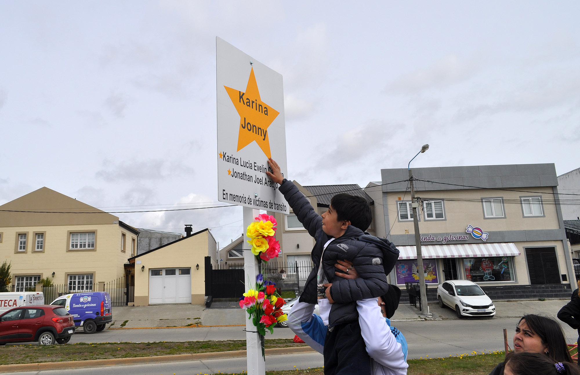 En el lugar, al que acudieron familiares directos de Karina y Jonathan junto a víctimas de otras tragedias viales, se emplazó también un cartel con los nombres de las víctimas. Gladys Bizzozzero, vicepresidente de la Red Nacional de Familiares de Víctimas de Tránsito, transmitió el pesar de los familiares. “Lamentablemente, perdieron la vida en un siniestro vial evitable, y donde quedan dos niños huérfanos y Lauti, que aún pelea por su vida” sostuvo Bizzozzero.