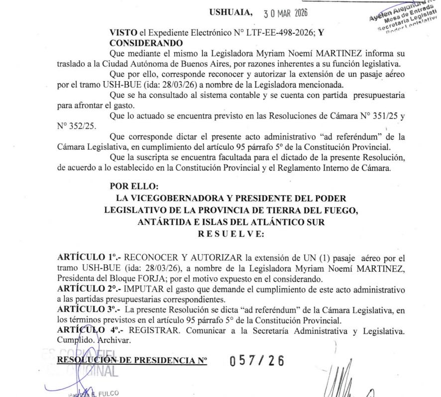 USHUAIA.- La Legisladora provincial del FORJA, Myriam Martínez se encuentra en el centro de la polémica tras conocerse el pedido de viáticos y pasajes para realizar gestiones en la Ciudad Autónoma de Buenos Aires.