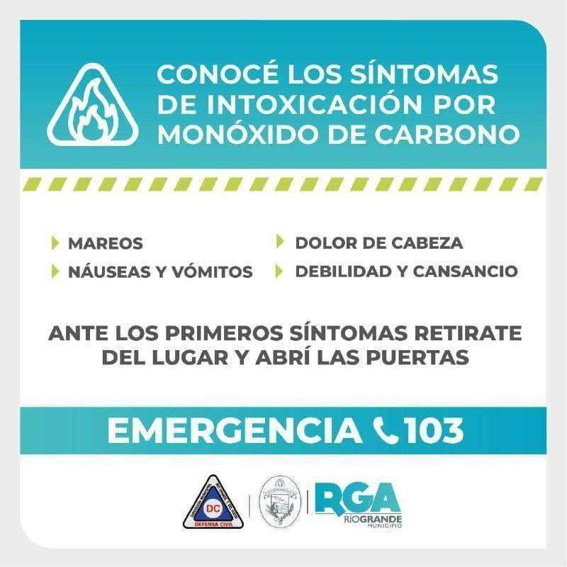RÍO GRANDE.– Defensa Civil Municipal brinda una serie de recomendaciones para que los vecinos y vecinas tengan en cuenta al momento de calefaccionar sus hogares y en pos de prevenir incidentes y/o intoxicaciones con monóxido de carbono.