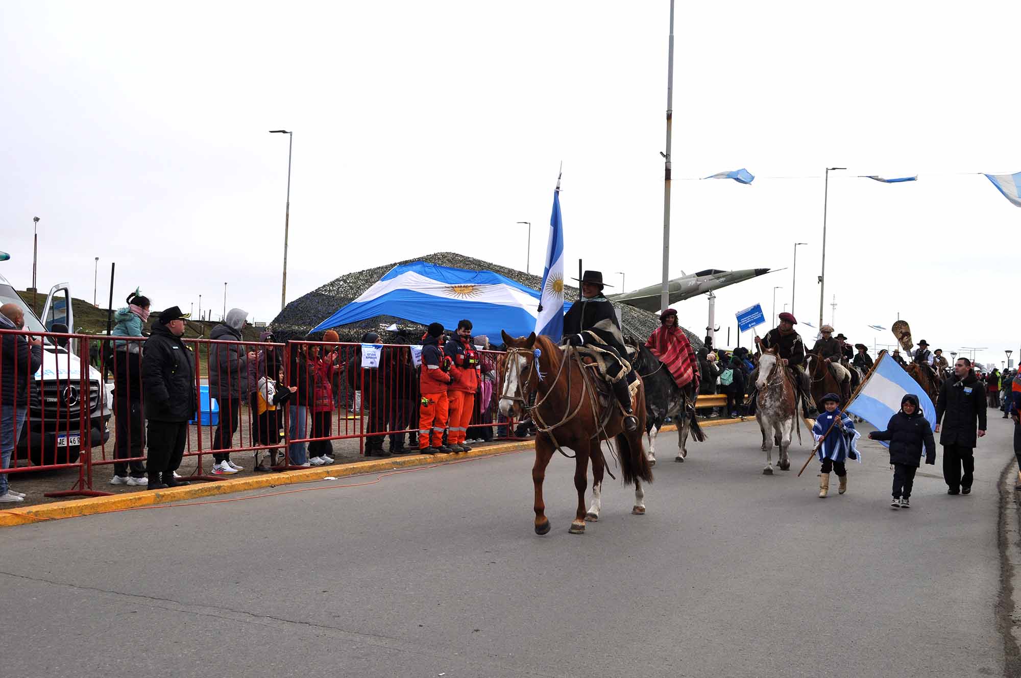 La apertura del paso institucional estuvo signada por la presencia de los protagonistas directos y sus allegados. Entre las agrupaciones que iniciaron la marcha se destacaron el Centro de Veteranos de Guerra “Malvinas Argentinas”, Generación Malvinas y el espacio A.R.A San Juan 44 en Patrulla Eterna. También brindaron su presente los representantes del Pueblo Selk’nam y la Comunidad Rafaela Ishton, seguidos por una nutrida delegación de centros de jubilados y antiguos pobladores que representaron a los adultos mayores de la zona.