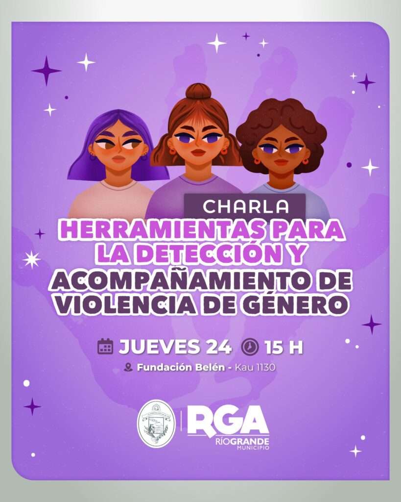 RÍO GRANDE.- Con el objetivo de continuar construyendo una ciudad más igualitaria, la Secretaría de Género y Desarrollo Comunitario, en conjunto con la Fundación Belén, invitan a toda la comunidad a participar de la charla informativa “Herramientas para la detección y acompañamiento de violencia de género”.